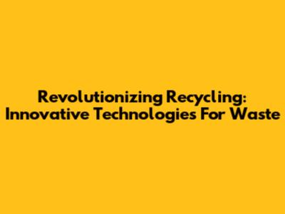 Revolutionizing Recycling: Innovative Technologies For Waste