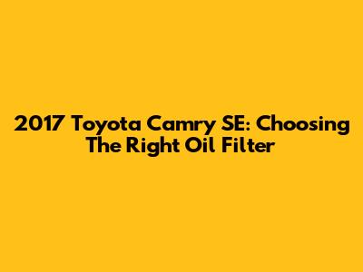 2017 Toyota Camry SE: Choosing The Right Oil Filter