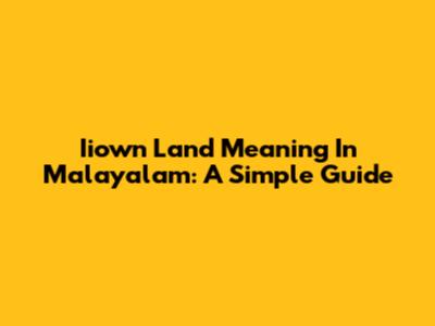 Iiown Land Meaning In Malayalam: A Simple Guide