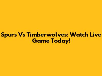 Spurs Vs Timberwolves: Watch Live Game Today!
