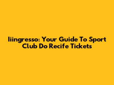 Iiingresso: Your Guide To Sport Club Do Recife Tickets