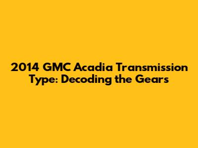 Hey there, gearheads! If you're here, you're probably wondering about the 2014 GMC Acadia transmission type. Well, you've come to the right place! This article is your go-to guide to understanding everything about the Acadia's transmission, why it matters, and what you might need to know as an owner or potential buyer. We'll dive deep into the technical specs, common issues, and even some tips on how to keep your Acadia's transmission running smoothly. So, buckle up, because we're about to shift into high gear and explore the heart of your Acadia's power delivery!