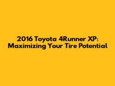 2016 Toyota 4Runner XP: The Ultimate Tire Guide