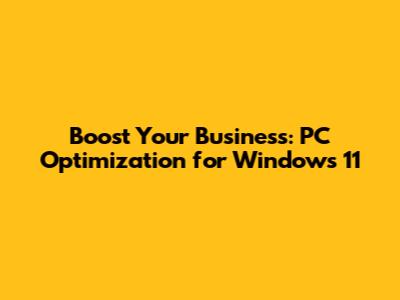 Boost Your Business: PC Optimization For Windows 11