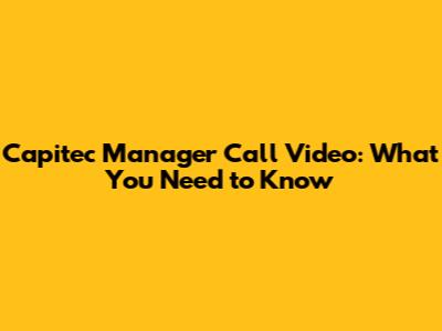 Capitec Manager Call Video: What You Need To Know