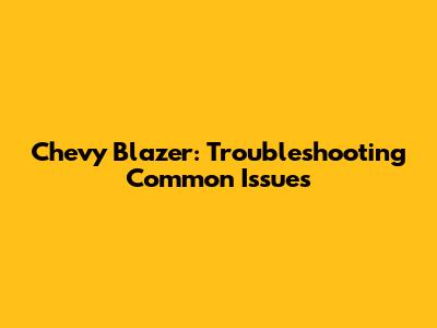 Chevy Blazer: Troubleshooting Common Issues