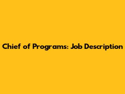 Chief Of Programs: Job Description