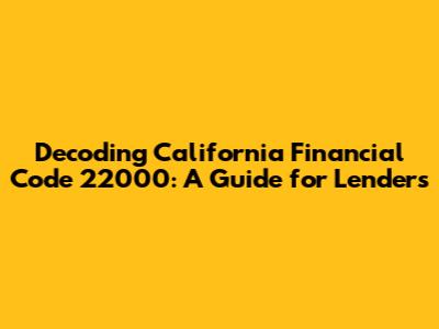 Decoding California Financial Code 22000: A Guide For Lenders