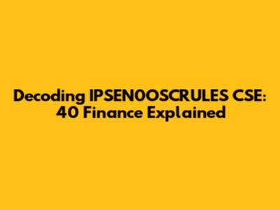 IPSEN0OSCRULES CSE within 40 Finance: A Detailed Look