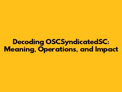 Decoding OSCSyndicatedSC: Meaning, Operations, And Impact