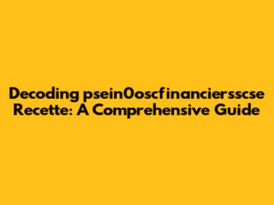 Decoding Psein0oscfinanciersscse Recette: A Comprehensive Guide