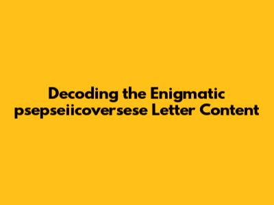 Decoding The Enigmatic 'psepseiicoversese' Letter Content