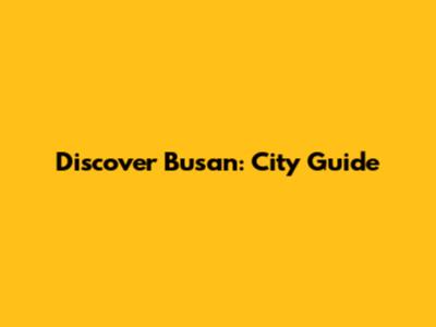 Discover Busan: City Guide