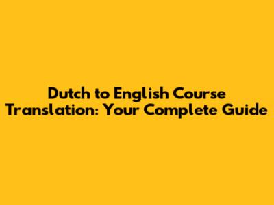 Dutch To English Course Translation: Your Complete Guide