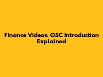 Finance Videos: OSC Introduction Explained