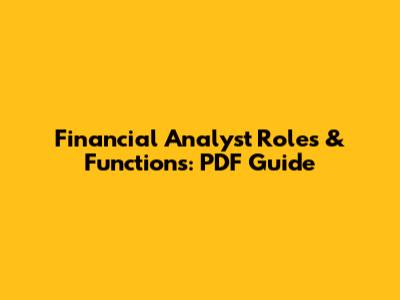 Financial Analyst Roles & Functions: PDF Guide