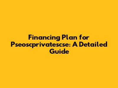 Financing Plan For Pseoscprivatescse: A Detailed Guide