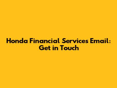 Honda Financial Services Email: Get In Touch