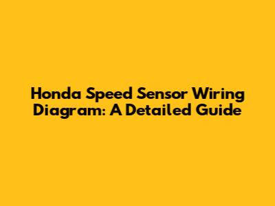 Honda Speed Sensor Wiring: A Detailed Guide