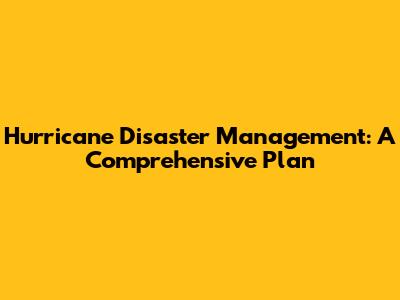 Hurricane Disaster Management: A Comprehensive Plan