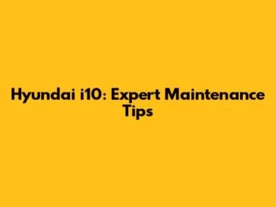 Hyundai I10: Expert Maintenance Tips