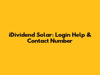 IDividend Solar: Login Help & Contact Number