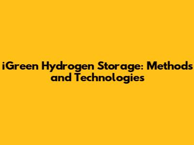 IGreen Hydrogen Storage: Methods And Technologies