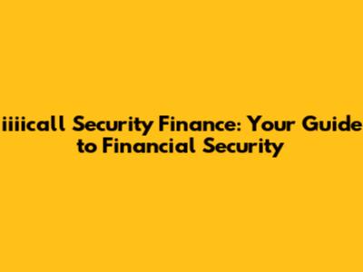 Iiiicall Security Finance: Your Guide To Financial Security