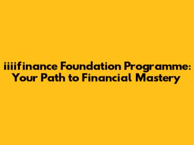 Iiiifinance Foundation Programme: Your Path To Financial Mastery