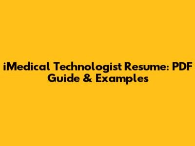 IMedical Technologist Resume: PDF Guide & Examples