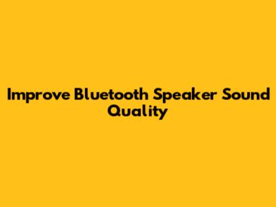 Improve Bluetooth Speaker Sound Quality