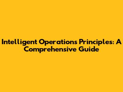 Intelligent Operations: Principles And Best Practices