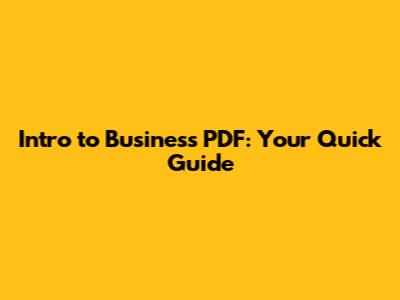 Intro To Business PDF: Your Quick Guide