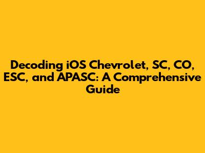 Hey guys! Ever stumbled upon terms like iOS Chevrolet, SC, CO, ESC, or APASC and felt like you're deciphering a secret code? Don't worry, you're not alone! These acronyms and brand associations can be a bit puzzling, but we're here to break it all down for you in a super friendly and easy-to-understand way. Let's dive into each term, explore its meaning, and see how they connect (or don't connect) in the grand scheme of things. Buckle up, it's going to be an informative ride!