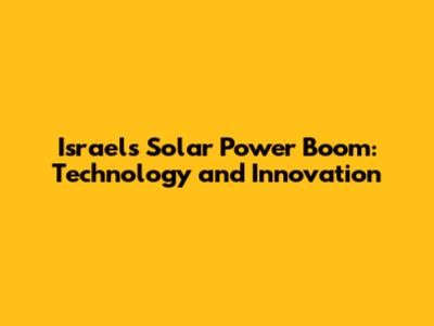 Israel's Solar Power Boom: Technology And Innovation