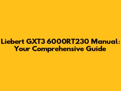 - Liebert GXT3 6000RT230 Manual PDF: Download the official manual from the manufacturer's website. This is your primary resource for all technical details.