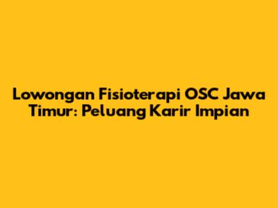 Lowongan Fisioterapi OSC Jawa Timur: Peluang Karir Impian