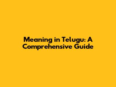 Meaning In Telugu: A Comprehensive Guide