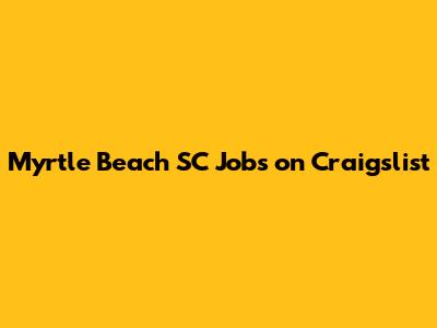 Myrtle Beach SC Jobs On Craigslist