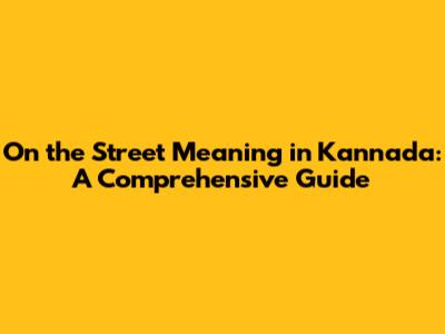 On The Street Meaning In Kannada: A Comprehensive Guide