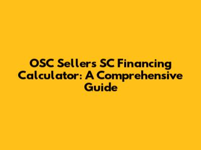 How to Use the OSC Sellers SC Financing Calculator: A Step-by-Step Guide
