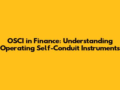 OSCI In Finance: Understanding Operating Self-Conduit Instruments