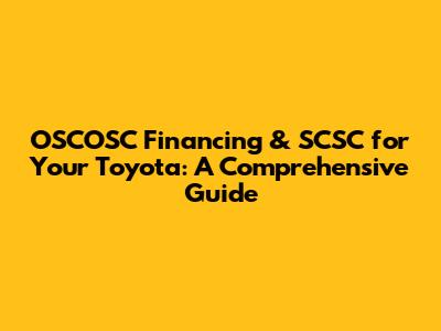 Hey there, Toyota enthusiasts! Ever heard of OSCOSC financing and SCSC? If you're a Toyota owner or thinking about becoming one, understanding these terms can be super helpful when it comes to financing and vehicle maintenance. This guide will break down everything you need to know about OSCOSC financing and SCSC, specifically tailored for your Toyota. We'll cover what they are, how they work, the benefits, and some things to consider before you dive in. So, grab a coffee, and let's get started!