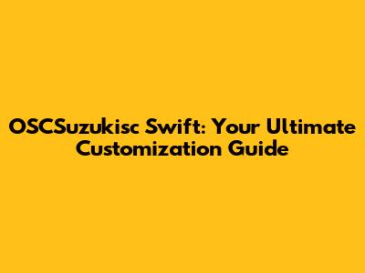 OSCSuzukisc Swift: Custom Mods & Tuning Guide