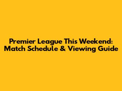 Premier League This Weekend: Match Schedule & Viewing Guide