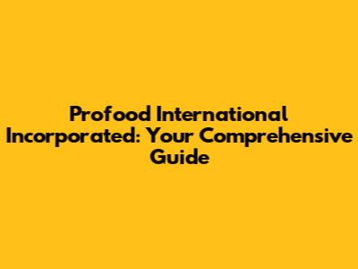 Profood International Incorporated: Your Comprehensive Guide
