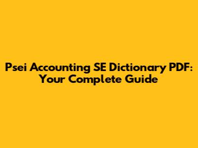 Psei Accounting SE Dictionary PDF: Your Complete Guide