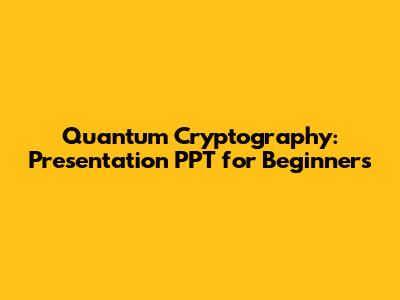 Quantum Cryptography: Presentation PPT For Beginners