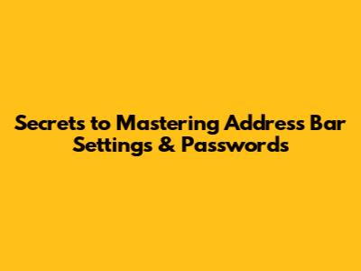 Secrets To Mastering Address Bar Settings & Passwords