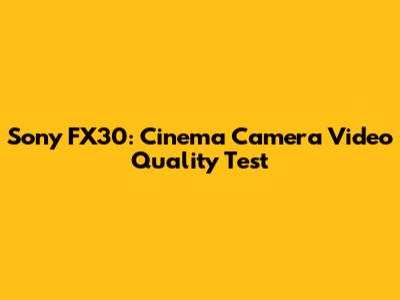 Sony FX30: Cinema Camera Video Quality Test